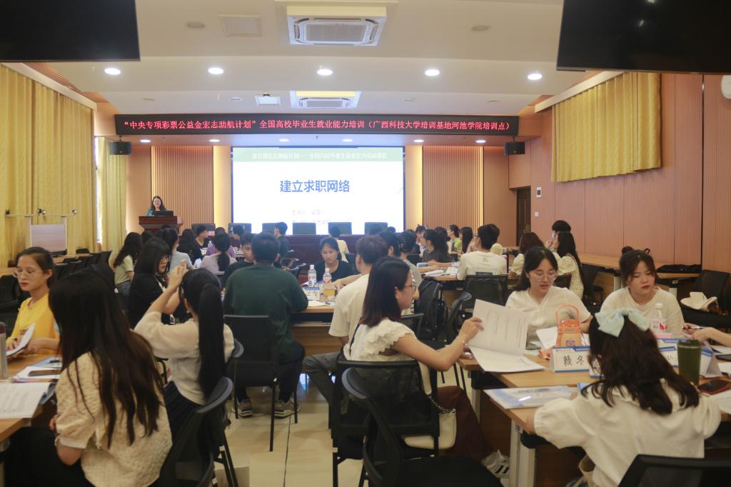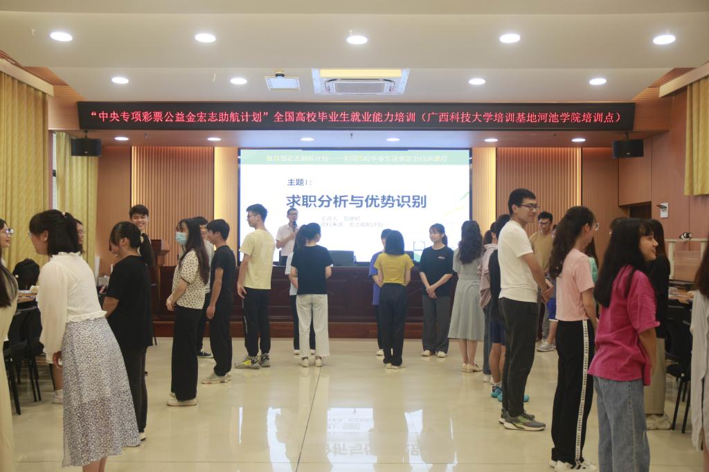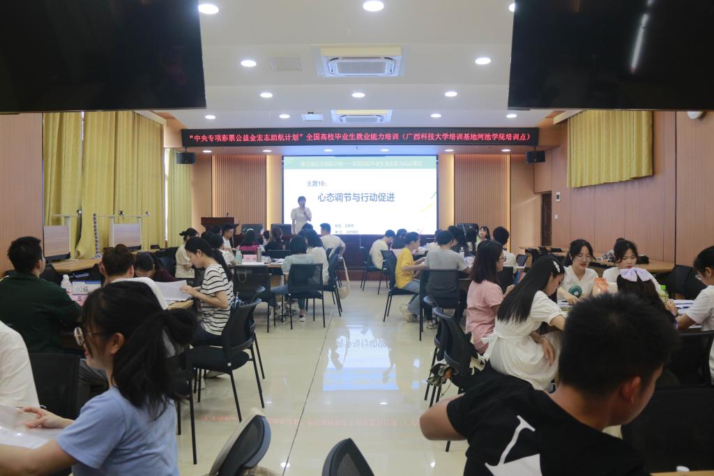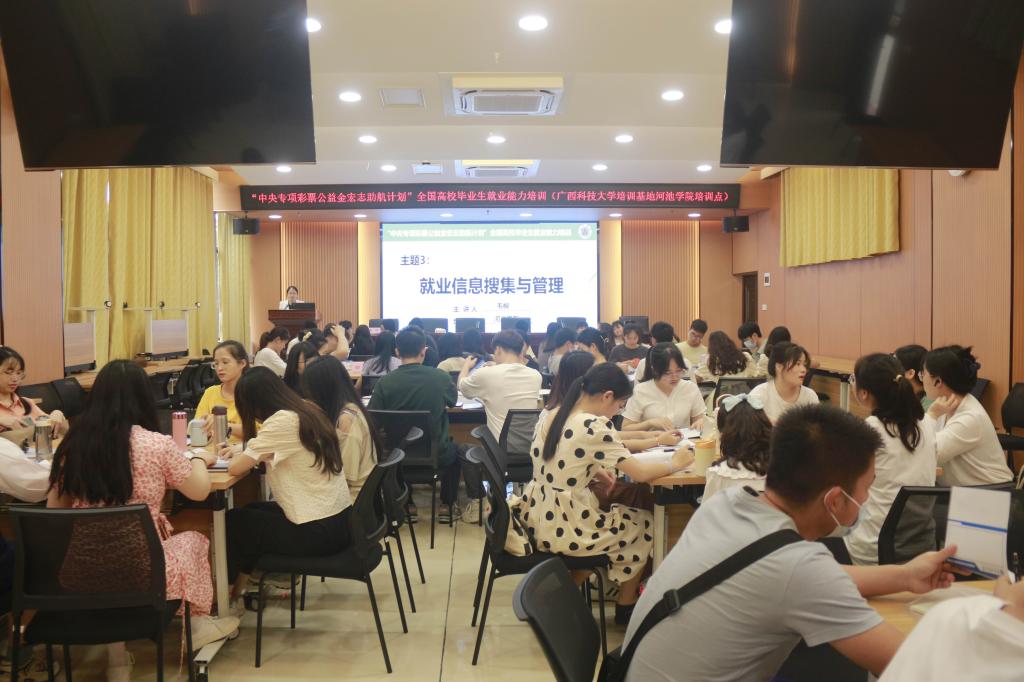 本次培训由全国高校毕业生就业能力培训基地(广西科技大学)承担,课程主要涵盖了求职分析与优势识别、探索求职方向与决策、就业信息搜集与管理、建立求职网络、求职简历撰写、自荐信撰写与书面沟通能力提升、个体面试与表达能力提升、群体面试与领导力提升、求职计划制定与进程管理和求职心态调节与行动促进等10个主题。