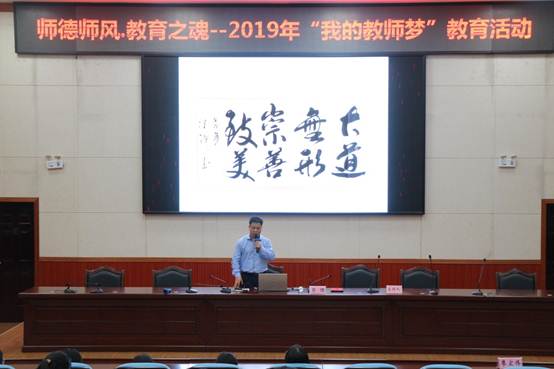 柳州市第一职业技术学校覃海波校长围绕《虚心学习实践、潜心教书育人——我的教师梦》这一主题作了生动的报告,他说:“广大教师要牢记习近平总书记嘱托,守教育报国初心、担筑梦育人使命要求,做党和人民满意的‘四有’好老师。” 他强调,要想学生好学,必须先生好学,惟有学而不厌的先生才能教出学而不厌的学生。