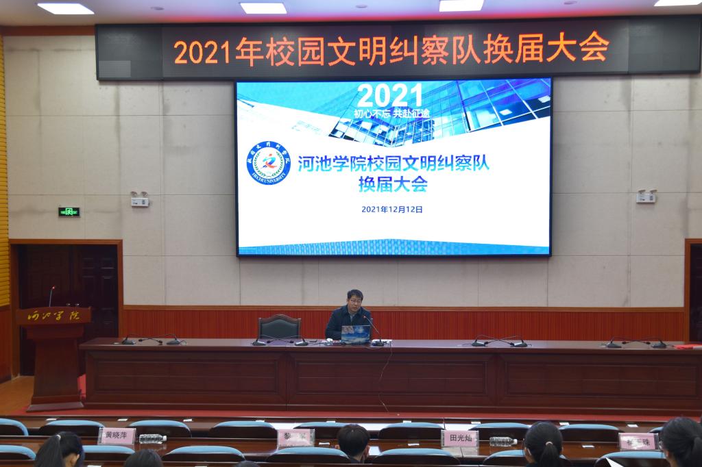 田光灿为本次换届大会进行总结并寄语队员。他首先表达了对校纠队全体队员的感谢,他表示,在过去的一年里,校纠队在认真完成校园安全巡逻本职工作的前提下,配合学生工作部完成了国家安全日反邪教宣传教育活动、校运会安全执勤及体育道德风尚奖评选、宿舍安全大检查、宪法日普法宣传活动等工作,队员们为校园安全文明建设贡献力量,个人能力也得到锻炼和提升。同时,他强调,校纠队作为由学生工作部直接指导的学生干部组织,从1996年创建以来,一直坚守着守护校园文明、维护校园安全的职责,希望新一届队员们也能够勇担新时期的新使命,共建安全文明校园。(通讯员/何玉芳 农玉梅 黄丽江 欧香麟 图/李苏洪 欧香麟)