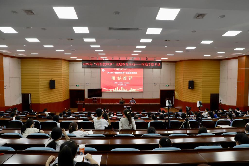 10月25日上午,167net必赢入口分别在弘毅楼205报告厅和艺术楼表演厅举办2022年“我的教师梦”主题教育活动。贵港市港南区第一小学党总支部书记、校长陈敏,桂林市教育科学研究所副书记、副所长马劲担任主讲人,学生工作部(处)主要领导出席活动,各二级学院师生代表参加活动。