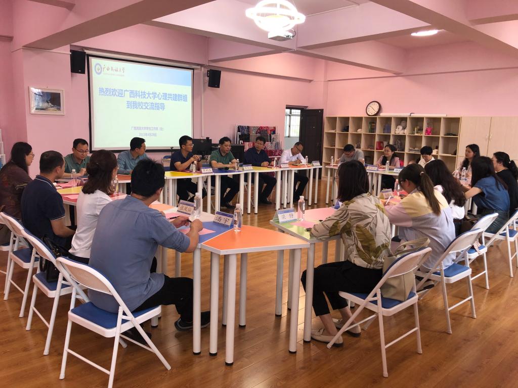 在广西医科大学考察中,该校学工部部长闵晓阳及心理健康教育与咨询中心的负责同志全面系统地介绍了学校心理健康教育工作机制、课程设置、危机干预等方面的经验做法。双方围绕课程设置和危机干预处理等方面进行了深入探讨与交流。