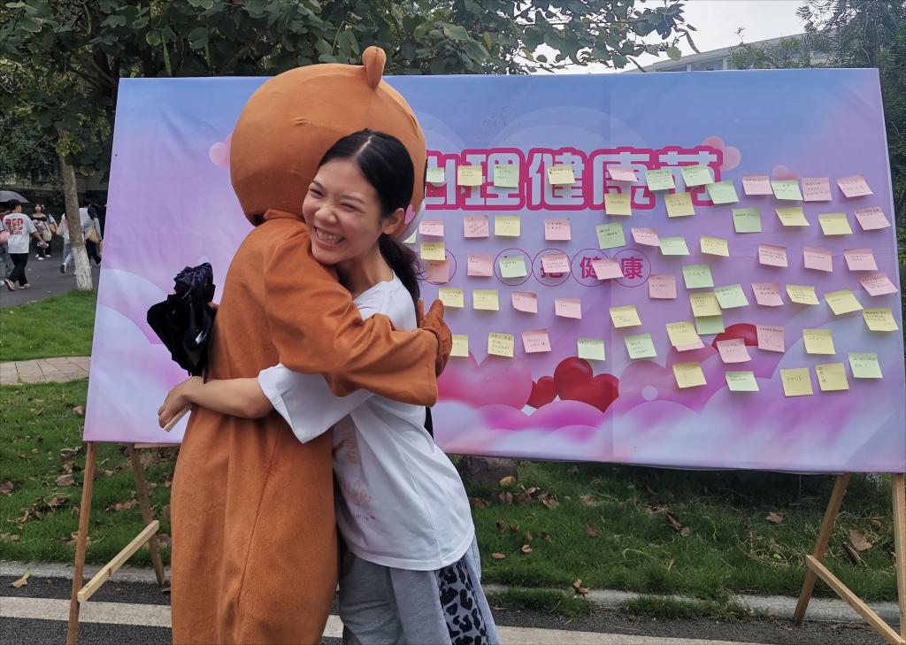 本次游园活动设有“从前慢”信件漂流、“阳光乐园”互动游戏、“手绘我心”百米涂鸦、“爱的抱抱”情感表达、“幸福心体验”校园采访以及一周生活手账作品展览等六个游园项目,通过多角度、多形式的宣传,提高同学们对心理健康的认识与重视。