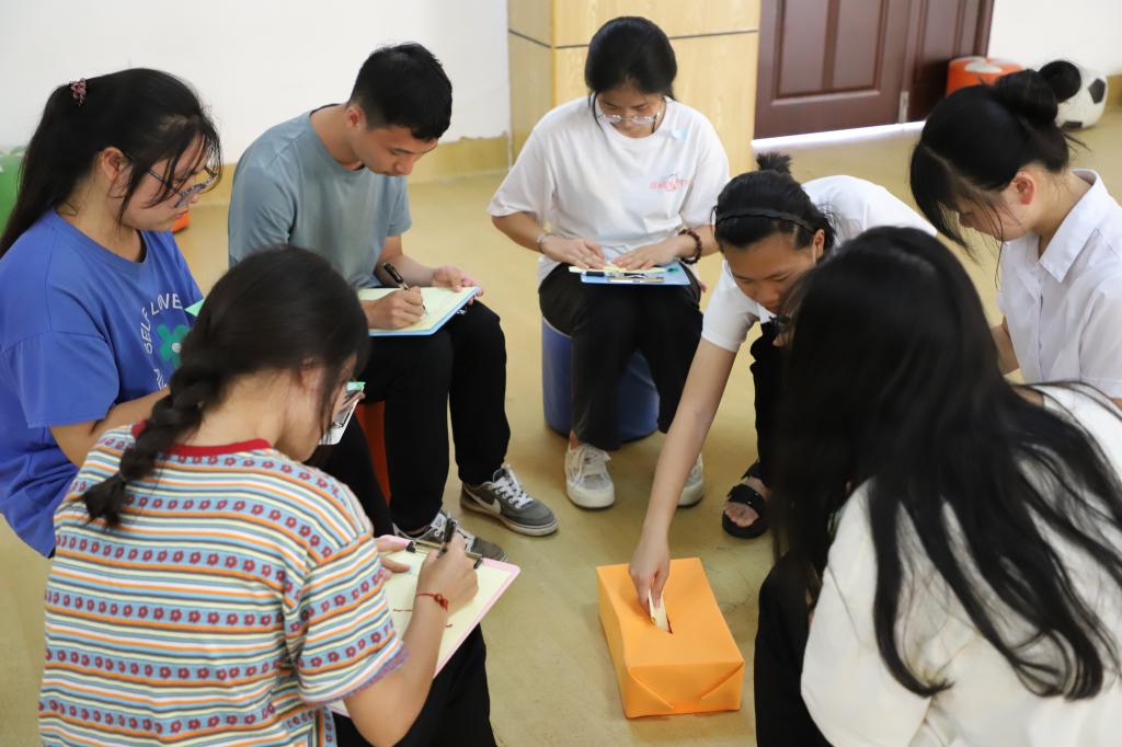 接下来的“潘多拉魔盒”环节中,同学们写下了近期的烦恼事件和心情,然后将它们投入“魔盒”中。随后,大家轮流从“魔盒”中抽取烦恼,并一起讨论如何调整情绪、解决这些烦恼问题。这个环节让同学们学会了如何正视烦恼、如何以更积极的角度去看待问题,同时也感受到了团队合作的力量和温暖。