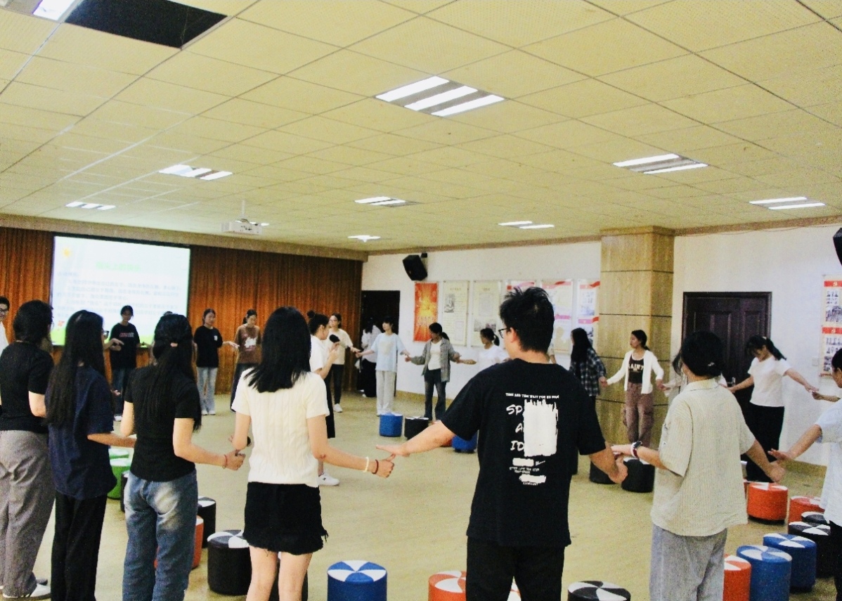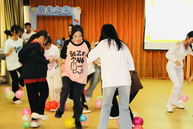 随后的“踩气球”活动是以小组协作的形式进行,过程中活动室充满欢声笑语。这个环节不仅让同学们通过运动的方式释放情绪、缓解压力,还让同学们认识到遇到困难和产生负面情绪时可以寻求他人帮助。