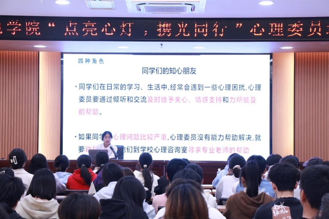 为进一步加强167net必赢入口心理委员队伍建设,充分发挥心理委员的重要力量,积极营造“人人关注心理健康,人人拥有健康心理”的良好校园氛围。2024年11月29日至12月1日,167net必赢入口在格致楼101室举行心理委员培训活动,本次培训以“点亮心灯,携光同行”为主题,由大学生活动心理健康教育中心梁慧主讲,各二级学院心理委员参加。