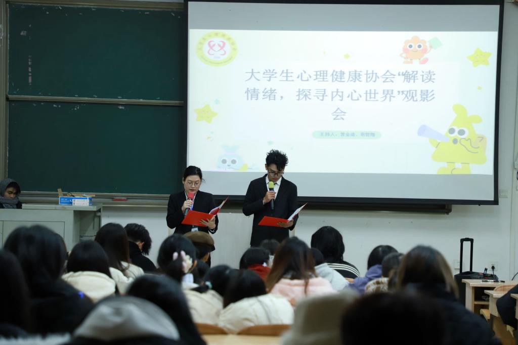 为了进一步宣传心理健康知识,提高同学们心理健康意识,大学生心理健康协会2024年12月7日在弘毅楼2-202教室开展了主题为“解读情绪,探寻内心世界”的观影会活动。