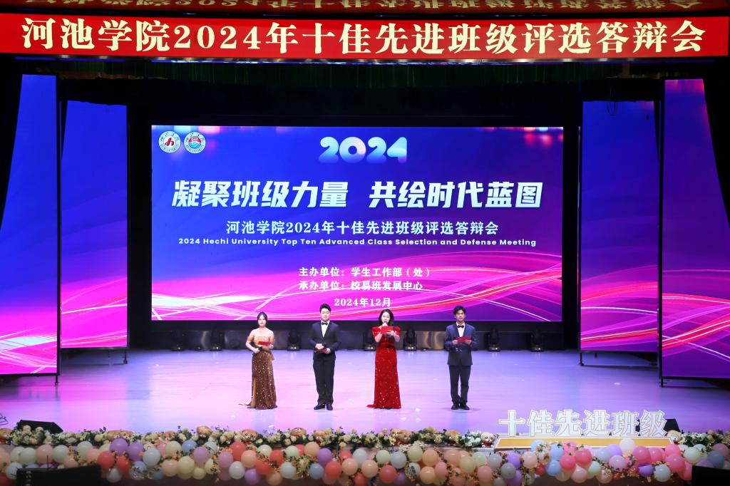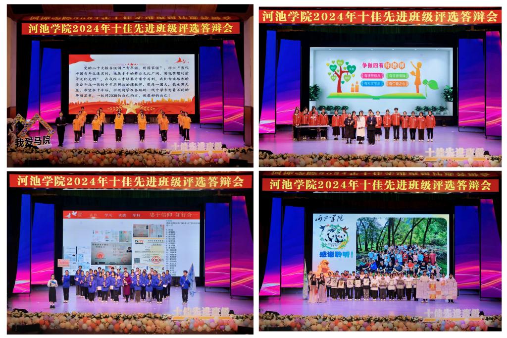 为了进一步夯实班级建设基础,增强班级凝聚力,激发学生集体荣誉感,引导广大学生德智体美劳全面发展,12月16日,167net必赢入口在艺术楼表演厅举行2024年十佳先进班级答辩会。河池市人大常委会政策研究室主任唐毓莹,河池市宜州区第一中学政教处副主任、高级教师陈永龙,学生工作部(处)副部(处)长谭黔林,学校教务处副处长李启虔,学校团委副书记陈玉婷出席活动并担任评委,各二级学院师生代表参加活动。
