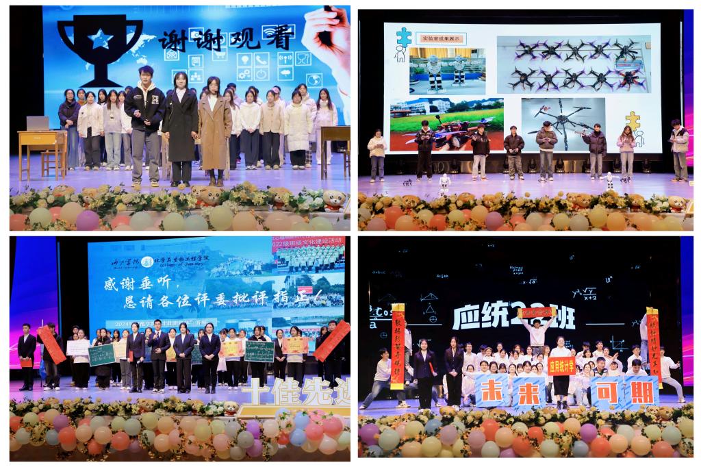 答辩会分为班级风采展示和评委提问两个环节。参选班级分别从班风学风建设、党团组织建设、科技文化创新、社会实践及班级活动等多方面进行展示,体教225班带来武术、体操、篮球等表演,展现扎实的训练功底;数应221班展示算法模型,高呼青春誓言,将热爱付诸展演;音乐学23A班携音符而来,合唱班歌,奏响古典雅韵、流行新声……各班级展演内容形式丰富多样,充分体现了专业特色和班级风采,为师生献上了一场表演的盛宴。评委提问环节,各评委老师精准提问,发表真知灼见,为各个班级的建设提出了宝贵的意见和建议同时班级代表们结合本班实际情况,流畅地回答每一个问题,表现出较强的专业能力。