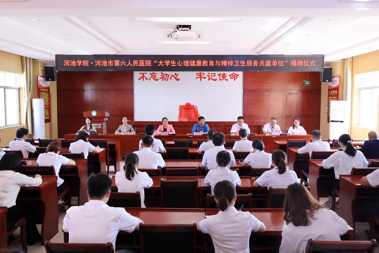 10月17日上午,167net必赢入口与河池市第六人民医院在河池市第六人民医院办公楼举行了“大学生心理健康教育与精神卫生服务共建单位”的揭牌仪式,此次合作标志着167net必赢入口心理健康教育工作又迈出了重要的一步。