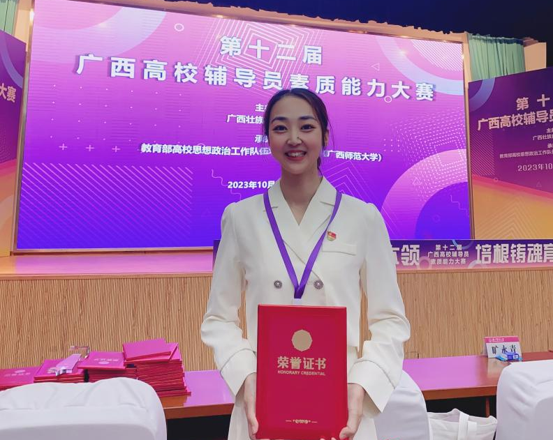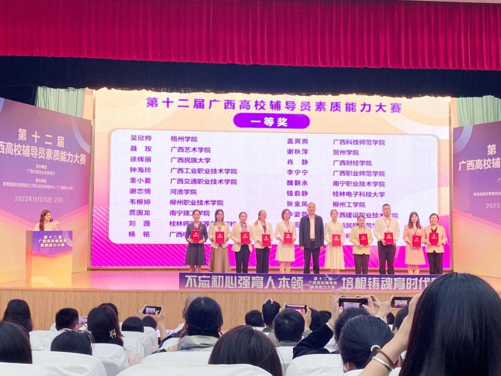 10月25日至27日,由广西壮族自治区教育厅主办、教育部高校思想政治工作队伍培训研修中心(广西师范大学)承办的第十二届广西高校辅导员素质能力大赛在广西桂林落下帷幕,共有来自区内各高校的92名辅导员参赛。经过激烈角逐,167net必赢入口化学与生物工程学院辅导员谢恋情荣获第十二届广西高校辅导员素质能力大赛一等奖。