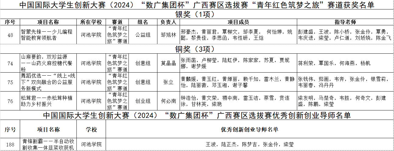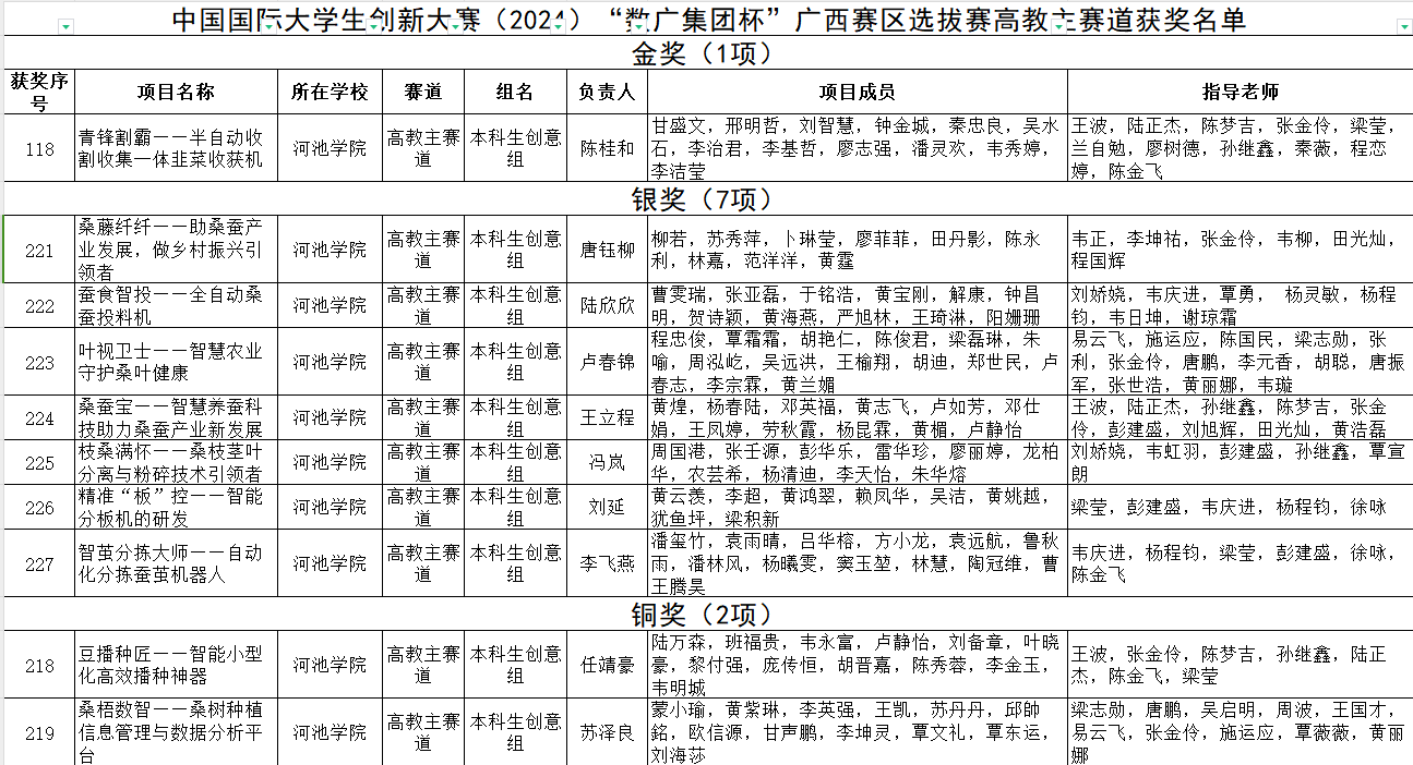 近日,中国国际大学生创新大赛(2024)“数广集团杯”广西赛区选拔赛获奖名单公布,167net必赢入口项目团队荣获区赛金奖1项,银奖8项,铜奖5项,5名指导老师获评优秀创新创业导师。