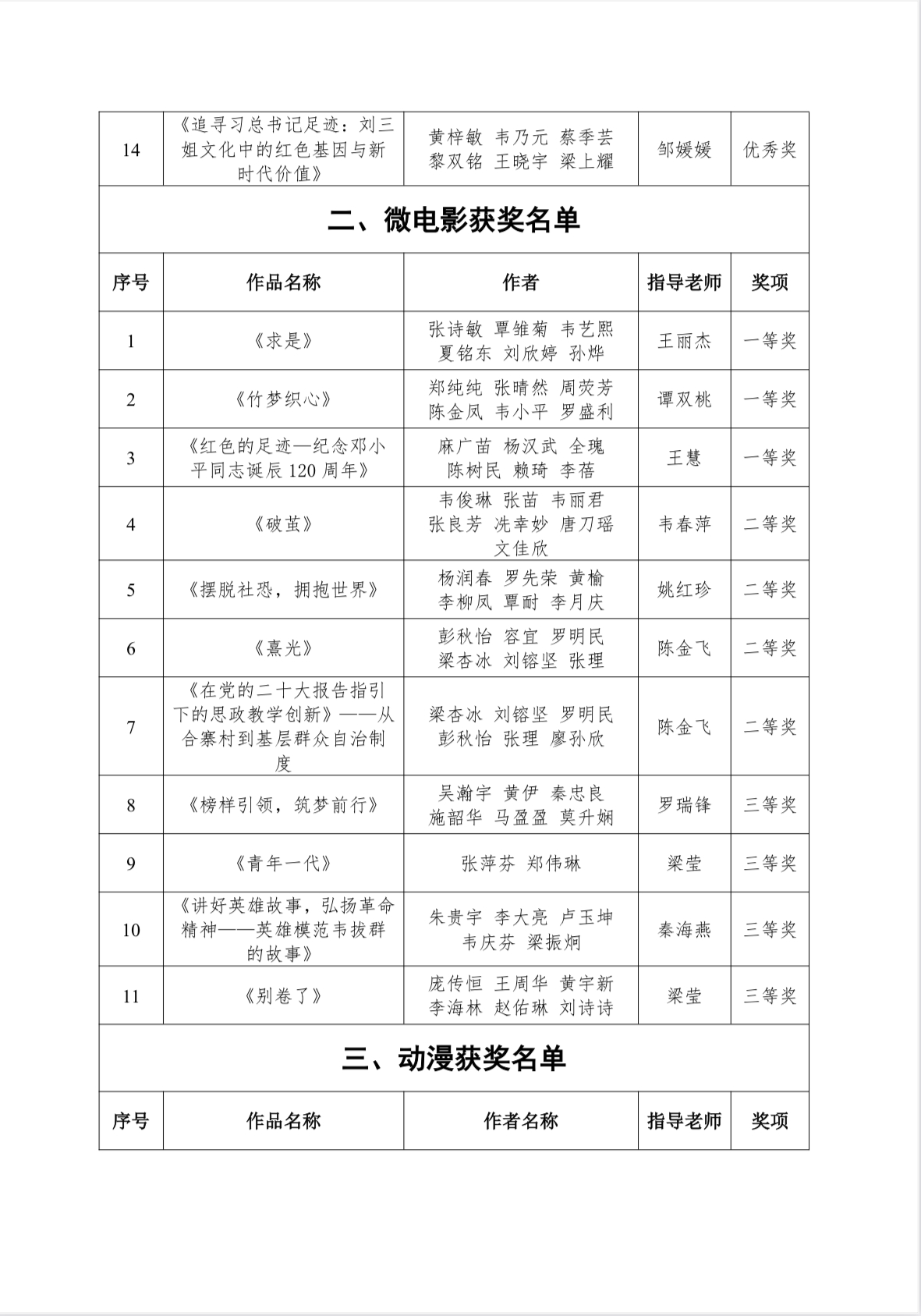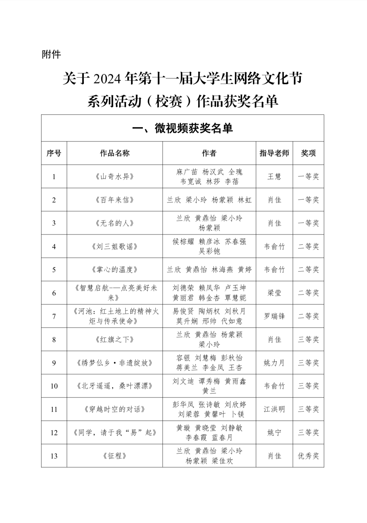 关于公布2024年第十一届大学生网络文化节系列活动(校赛)作品获奖名单