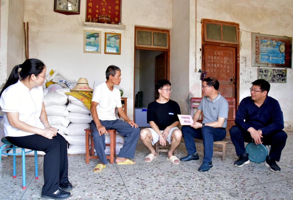 为把学生思想政治教育工作贯穿教育教学全过程,确保国家学生资助政策家喻户晓、深入人心,持续强化家校协同育人合力和“资助育人”工作成效,7月16日,学校党委常委、副校长韦文广带队赴忻城县红渡镇、古蓬镇两地,对家庭经济困难学生进行实地家访。