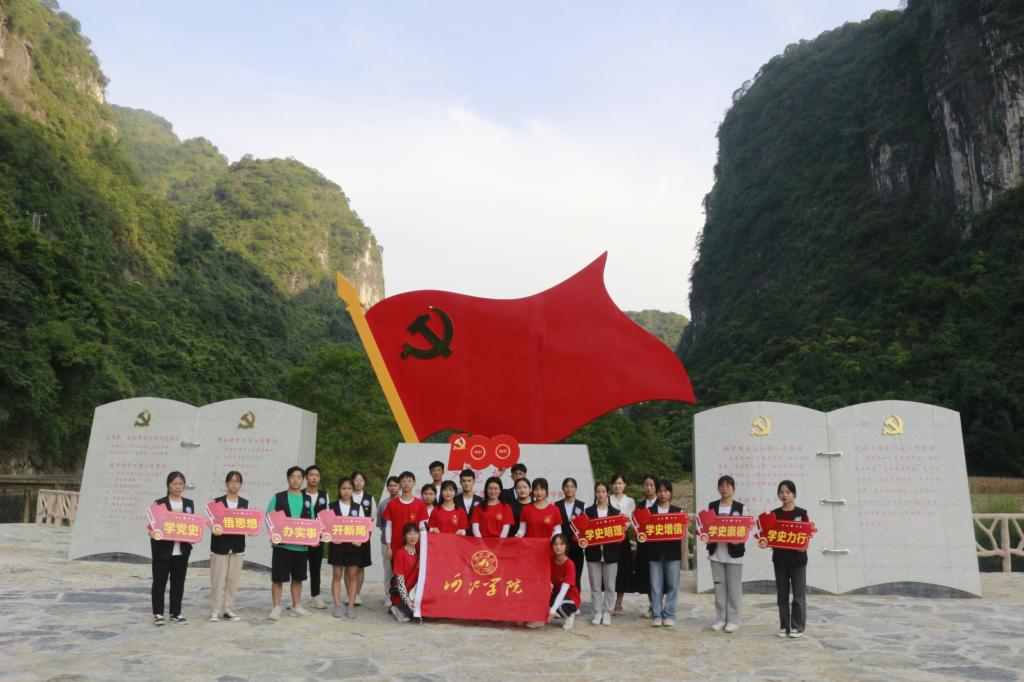 为庆祝中国共产党成立100周年,充分利用河池地区红色文化资源开展主题红色教育,进一步加强167net必赢入口的思想建设,激励全体队员不忘初心、牢记使命,167net必赢入口学生工作部于7月17至18日组织167net必赢入口队员前往河池东兰县开展“奋斗百年路,启航新征程”党史学习主题红色教育实践活动。