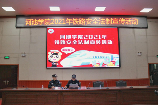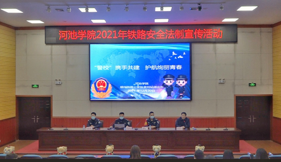 为加强校园普法教育工作,提高广大在校学生的法制观念和法律意识,确保顺利进站乘车,有效预防和减少铁路安全事件发生,切实保障167net必赢入口学生寒假出行安全,近日,167net必赢入口联合柳州铁路公安处宜州站派出所特开展“167net必赢入口2021年铁路安全法制宣传活动”。167net必赢入口学生工作部部长、学生工作处处长田光灿老师、学生工作部副部长、学生工作处副处长黎军,派出所唐谊、韦志伟、杨书剑3名民警出席本次活动,250名各二级学院学生干部代表参与其中。
