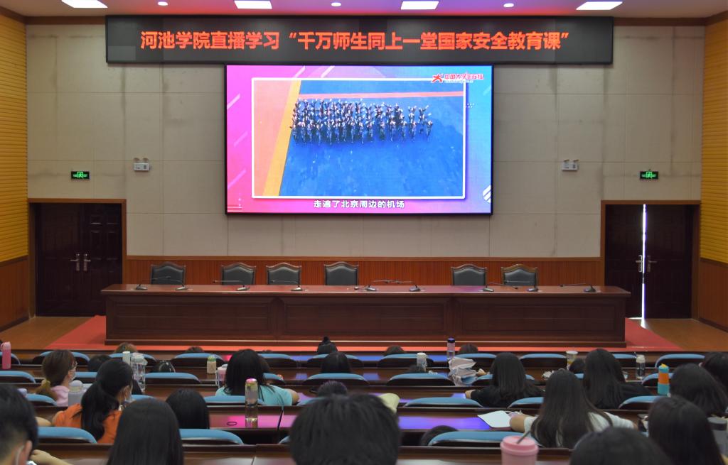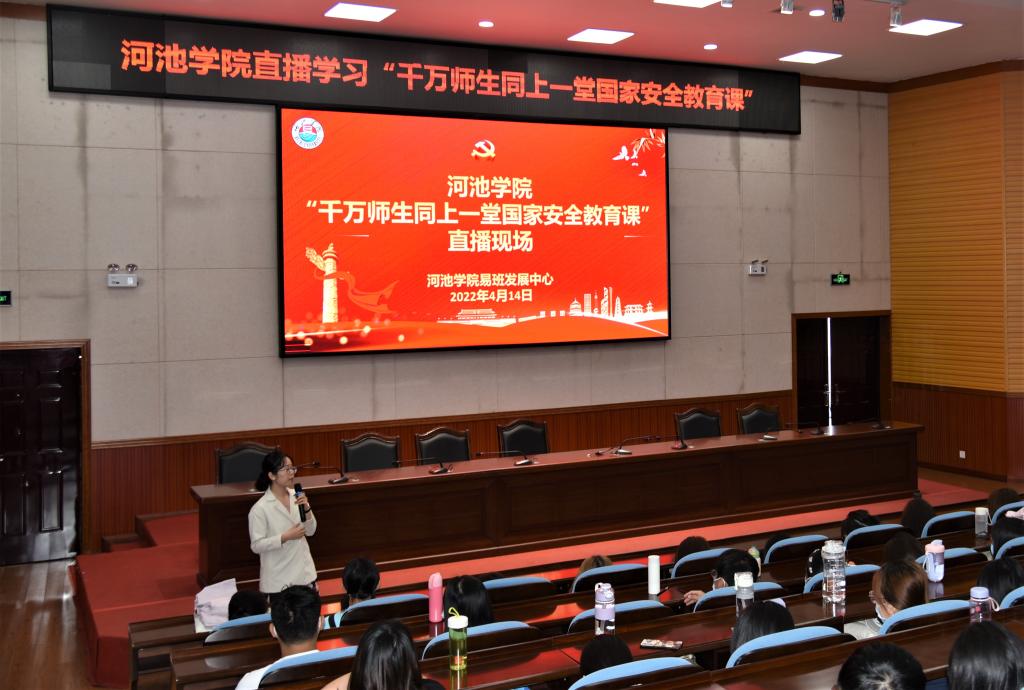 4月14日下午,167net必赢入口易班发展中心于弘毅楼1-205会议室组织150名学生直播学习“千万师生同上一堂国家安全教育课”,同时,各二级学院依据实际情况,组织学生在校内不同场所观看直播。