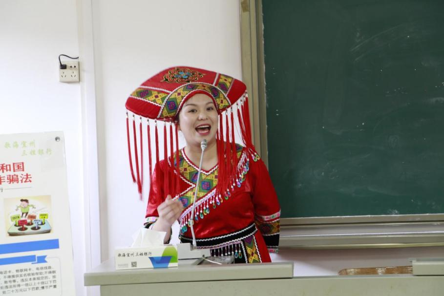 活动开始,相关工作人员给现场师生发放金融知识宣传折页,宣讲人员结合真实案例以幽默风趣的语言,对“反洗钱及反电信网络诈骗”“反假币知识”“远离校园贷、爱护征信纪录”三个方面的知识进行宣传讲解,揭示生活中常见的诈骗陷阱,生动形象地讲述“校园贷”、“套路贷”的危害。同时,告知大家个人信息泄露后的维权途径,并结合“征信修复”陷阱案例,向大家宣传防范电信诈骗和保持良好信用记录的重要性。活动期间,运用传唱山歌的方式带大家一起唱响“反诈山歌”,并围绕反诈主题展开知识抢答,现场气氛热烈浓厚。