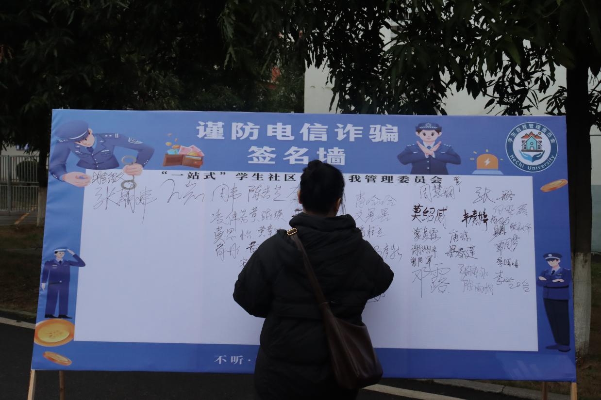 活动现场,自管会成员手持宣传单,热情地向过往师生介绍反诈知识。每当有同学经过,工作人员便主动上前,微笑着递上宣传单,并耐心讲解反诈要点。活动还通过扫码答题、签名墙等新颖形式,激发师生学习反诈知识热情,增强防诈反诈意识,凝聚反诈力量。