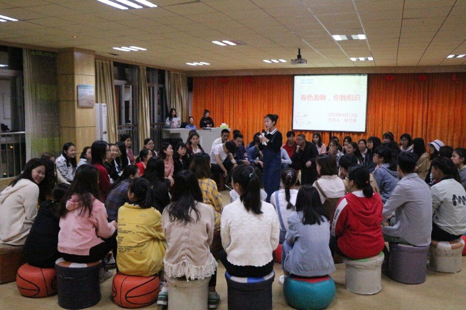 为了帮助同学们更好的认识自我、展现自我、主动与他人交流、拥有良好的人际关系。近期,大学生心理健康教育中心在朋辈团体心理辅导中心举行了“人际关系”的朋辈团体心理辅导系列活动首期活动——“春色盈眸,你我相识”。本期活动由文学与传媒学院朋辈心理辅导员欧兰亲同学主持,来自各二级学院的70名学生参与了活动。据悉,本学期朋辈团体心理辅导系列活动包括“春色盈眸,你我相识”、“探索自我”、“我、你、我们”、“交友之道”、“并肩前行”、“共解难题,与你同行”、“施之以爱,报之以恩”和“一路有你”八期专题活动。
