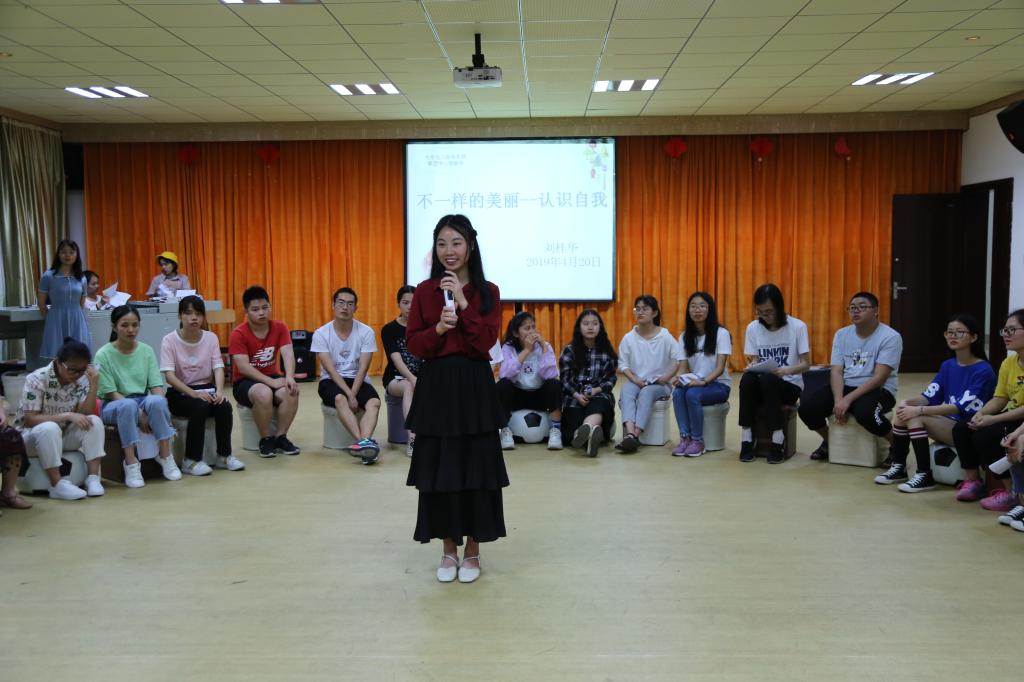 为了使同学们进一步发现认识自己,完善自己,学会悦纳自己,在人际关系中学会理性看待他人的评价,拥有良好的人际关系。2019年4月20日,大学生心理健康教育中心在朋辈团体心理辅导中心举行了第二期“人际关系”的朋辈团体心理活动之——“不一样的美丽---认识自我”。本期活动由经济与管理学院朋辈团体心理辅导员刘桂华主持,来自各二级学院的50余名同学参与此次活动。