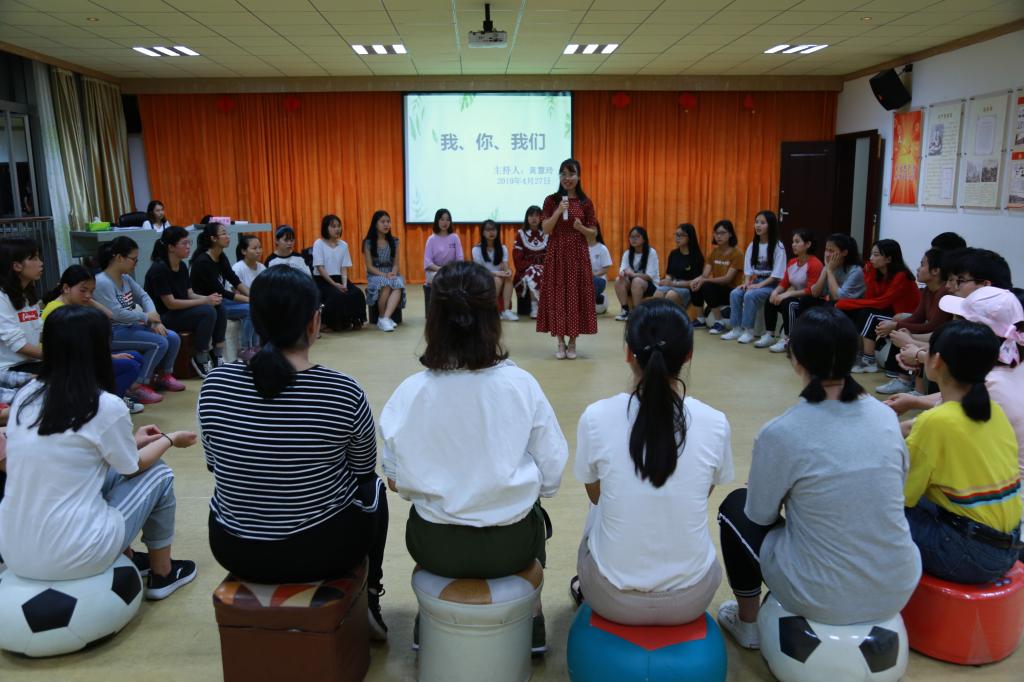 为了帮助成员们打开心扉,学会与朋友沟通交流,彼此坦诚相待,体会与朋友默契交往的快乐。近期,大学生心理健康教育中心在朋辈团体心理辅导中心举行了第三期“人际关系”的朋辈团体心理活动之——“我、你、我们”。本期活动由外国语学院朋辈团体心理辅导员黄慧玲主持,来自各二级学院的50余名同学参与此次活动。