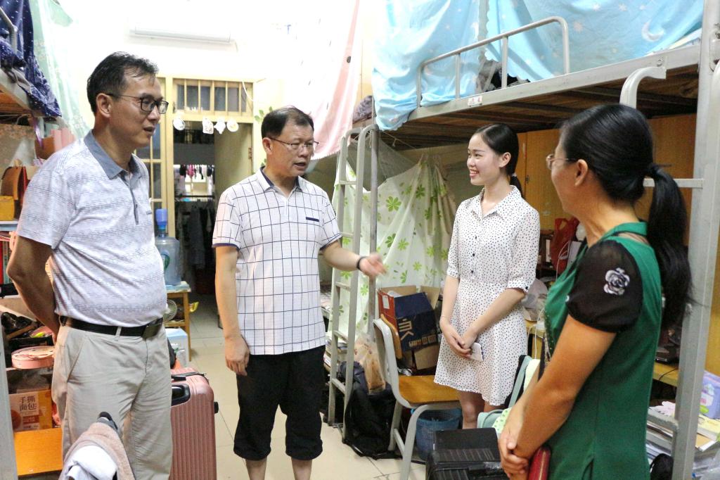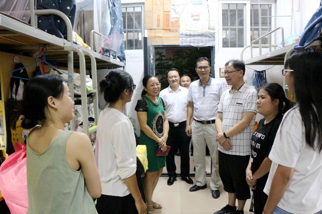 9月8日晚,学校副校长韦文广带队走访学生公寓,深入了解学生返校情况及各方面动态,并代表学校领导班子给学生带去关怀和慰问。学生工作部部长、学生工作处处长梁达友,学校团委书记李晓东等人员陪同。
