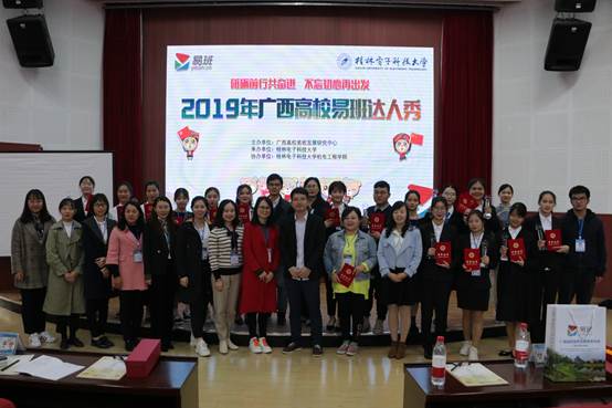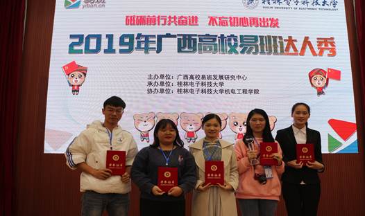 11月22日-23日,全区高校第二期易班培训开班仪式暨2019年广西高校易班达人秀现场宣讲赛在桂林电子科技大学金鸡岭校区隆重举行。167net必赢入口易班学生工作站指导老师黄晓萍带领易班学生工作站站长张小珊,副站长胡淏、覃雅妮,视觉传达部部长陆丽秋参加此次活动,并在此次活动中荣获佳绩。