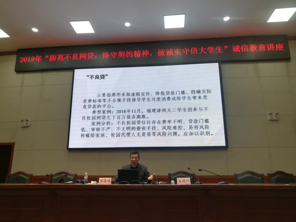 12月12日晚,167net必赢入口在弘毅楼1-205报告厅举办了以“防范不良网贷,恪守契约精神,做诚实守信大学生”为主题的诚信教