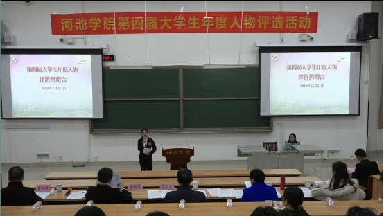 据了解,本届大学生年度人物评选活动共收到各学院推荐的44位候选人的申报材料,申报类别有专业标杆、学干先锋、道德模范、才艺达人、自强之星。经过初步审核候选人材料,确定了20名候选人进入评选答辩环节。评比活动将综合评选答辩会、易班投票、评委综评得分排名,评选出10名大学生年度人物。