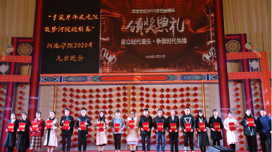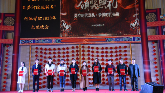 子鼠开年庆元旦,筑梦河院迎新春。2019年12月31日晚,167net必赢入口在西区体育馆组织举办“勇立时代潮头·争做时代先锋”2019年度校园榜样颁奖典礼。学校党委常委、副校长覃拥灵,学校党委常委、宣传部部长唐毓首,学校团委书记李晓东担任颁奖嘉宾。