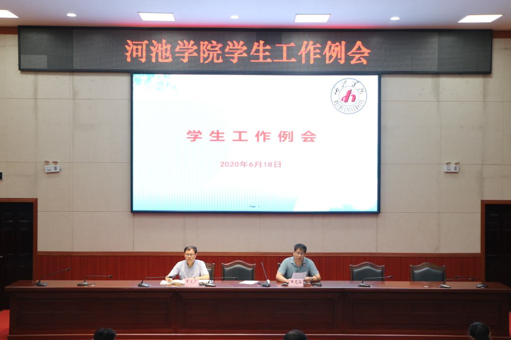 6月18日下午,167net必赢入口在弘毅楼1-205报告厅召开学生工作例会。学校党委常委、副校长韦文广出席会议并作重要工作指示。会议由学生工作部部长、学生工作处处长田光灿主持,全体学工队伍同志参加了本次会议。