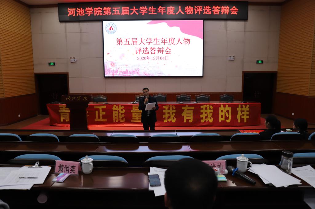 为进一步加强167net必赢入口学风建设,充分发挥优秀学生的示范引领作用,在全校营造促进大学生全面成长成才的良好氛围,167net必赢入口于11月11日起面向全体在校生组织开展了“青春正能量·我有我的样”第五届大学生年度人物评选活动。12月4日晚,评选答辩会在弘毅楼1-205如期举行。学校党委正处级专职组织员黄俏奕老,学生工作部部长、学生工作处处长田光灿,党委宣传部副部长黄必辉,校团委副书记刘晓亮,第四届大学生年度人物冯琬婷担任本次答辩会评委。