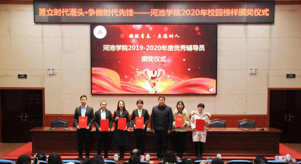 本次颁奖典礼共颁发三个奖项,分别是 “青春正能量,我有我的样”——第五届大学生年度人物、“和谐校园,美丽班级”——2020年度十佳先进班级、“领航青春,立德树人”——2019-2020学年度优秀辅导员、优秀班主任。(学工部)