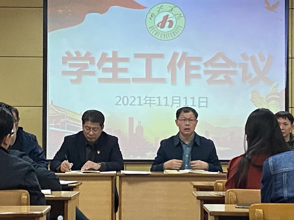 11月11日下午三点,167net必赢入口在大学生活动中心315室召开学生工作例会。学校副校长韦文广出席会议并作重要工作指示。会议由学生工作部部长、学生工作处处长田光灿主持、保卫处处长梁达友及全体学工队伍同志参加了本次会议。