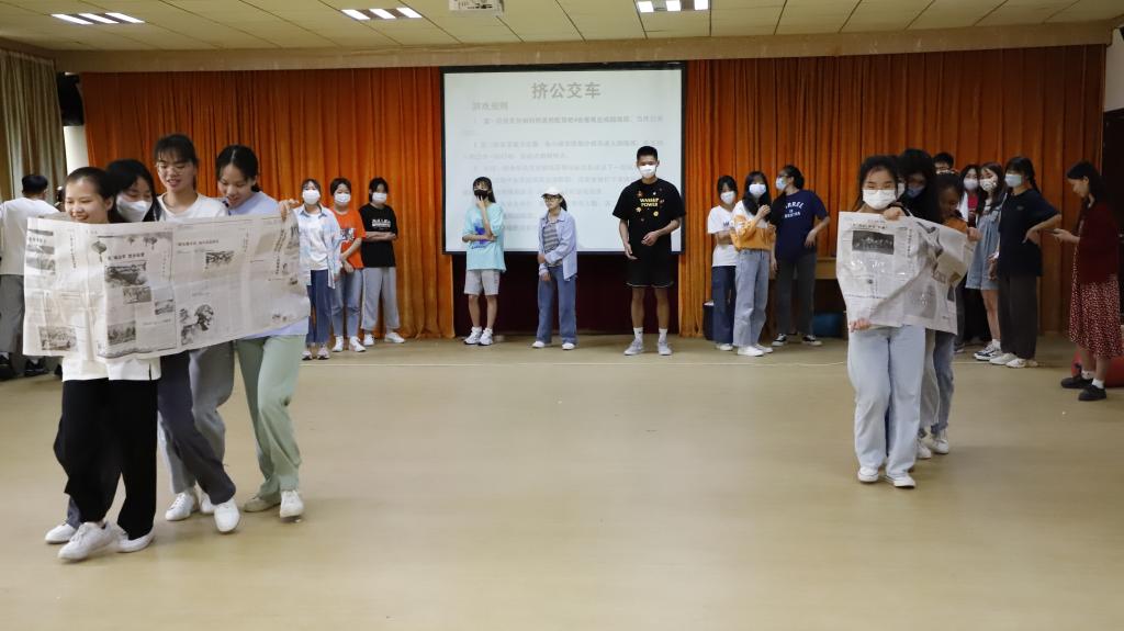 伴随着轻松欢快的音乐声,本期活动以热身游戏“花丛采蜜”拉开了序幕。在主持人的引导下,扮演“蜜蜂”的同学都努力地飞往“花丛”寻找花蜜,几轮游戏下来,“蜜蜂”们在欢声笑语中满载而归。带着这份收获的喜悦,我们进入下了一个环节——“人生的三次幸运”,通过视频以及主持人的讲解,同学们意识到了生命的诞生是一个非常幸运的过程,每一个生命都来之不易,我们应该珍惜生命这笔宝贵的资源,把握好自己的生命之舟。在“寻找人生的资源”这一环节中,同学们认真分析与总结自己拥有的资源,随后窸窣笔下,并与小组成员讨论分享如何利用资源达成目标。伴着对人生资源的思考我们进入了实践阶段,在“挤公交车”环节,制造公交车时,同学们从第一轮的杂乱无章到第二轮的井然有序,小组成员慢慢学会了合理地利用“资源”,根据成员特点分工合作,提高了工作效率,为团队贡献出了自己的一份力量,更好的完成目标。