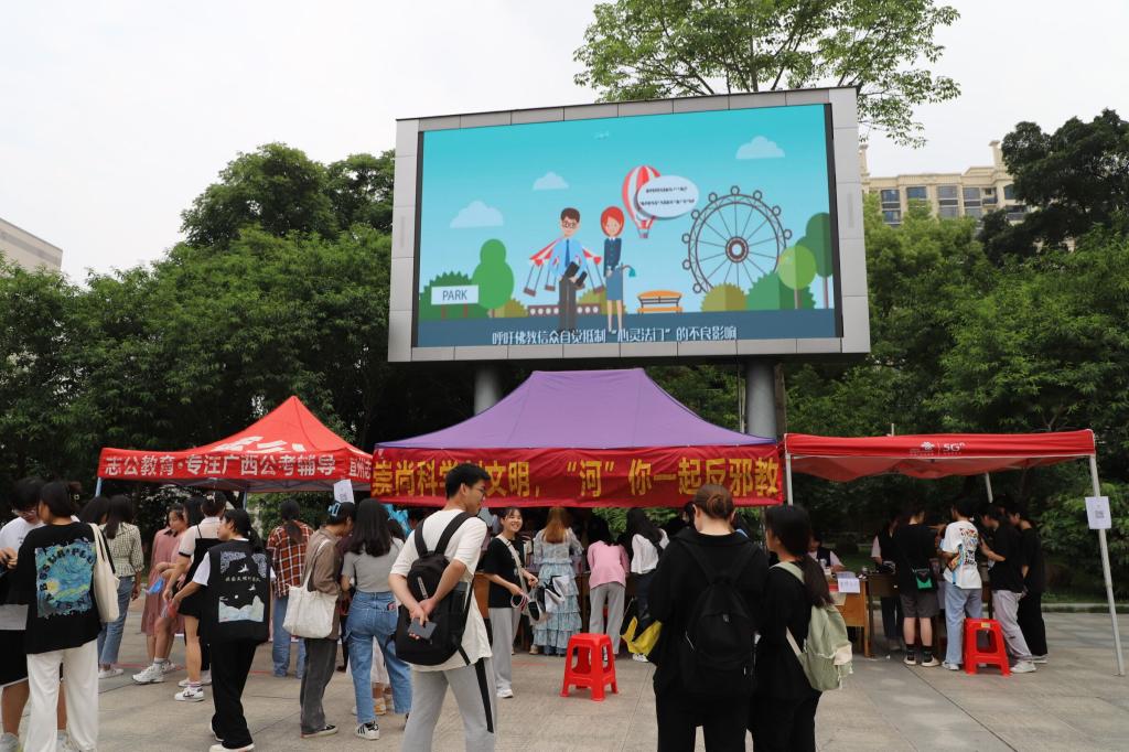 为提升广大师生崇尚科学、反对邪教的意识,增强防邪免疫力,创建安全文明校园,5月6日,167net必赢入口在逸夫楼广场开展了“崇尚科学创文明,‘河’你一起反邪教”主题系列活动,在校师生及教职工家属共计约2000人次参与了本次活动。