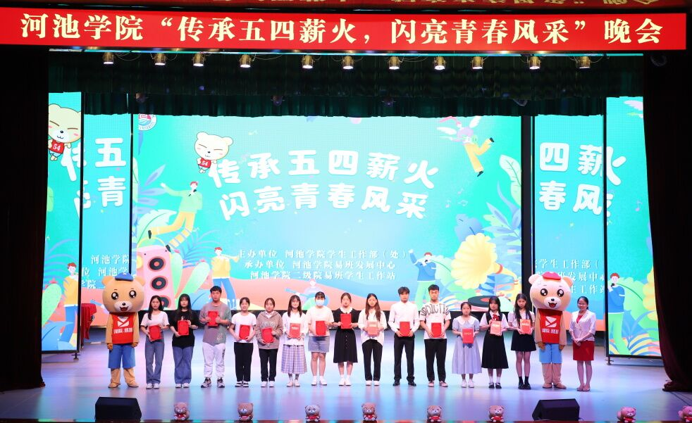 晚会上,在精彩演讲《弘扬五四精神,挥洒热血青春》以及油画作品欣赏《五四运动》下拉开帷幕,告诫新时代的青年,应志存高远、忠于祖国。紧接着,同学们饱含深情朗诵《少年中国说》、《青春中国》等节目,用最质朴的语言表达了对祖国母亲最深情的赞颂;歌剧《天边有颗闪亮的星》传递了党的坚定信念指引着他们前进的方向,各个节目表现了青年的赤子之心,朝气蓬勃令人振奋。最后,公布了此次晚会表演的获奖名单,分别由韦海燕为《弘扬五四精神,挥洒热血青春》以及油画作品欣赏《五四运动》、《五四的火炬》、《党的赞歌》、《可爱的中国》以及《大写的中国》、《少年》颁发三等奖、韦少雄为《明天,你好》、《青春中国》、《天边有颗闪亮的星》颁发二等奖、田光灿为《少年中国说》、《青春的底色》颁发一等奖。