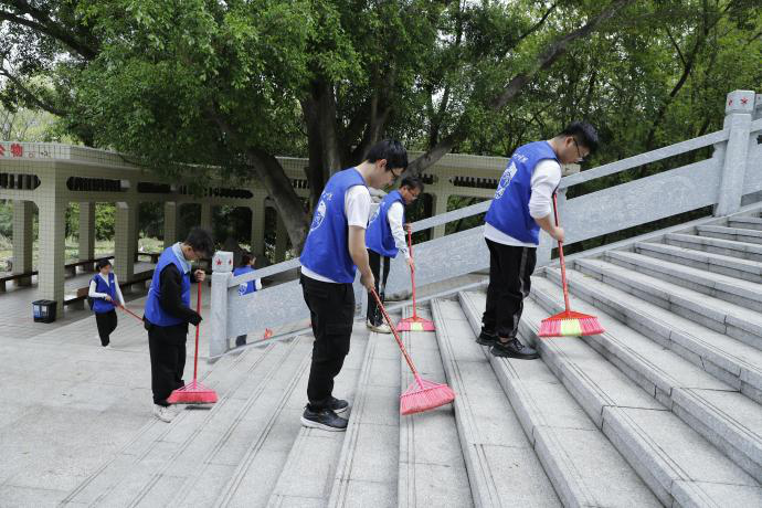 活动尾声,全体师生自发在烈士陵园内进行了清扫。