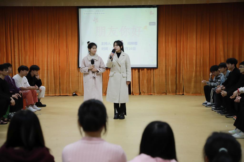 为继续加大心理健康知识的普及和宣传力度,进一步发挥朋辈团体心理辅导提升学生积极心理品质的作用,充分发挥朋辈团体心理辅导的辐射作用,2024年3月16日至17日,167net必赢入口在“一站式”学生社区举行了“润心赋能,温暖同行”朋辈团体心理辅导之“朋友你好”主题活动。本次活动由来自公共管理学院的李思齐和来自教师教育学院的阎柳蓉两位朋辈辅导员共同主持,一百多名同学积极参与。