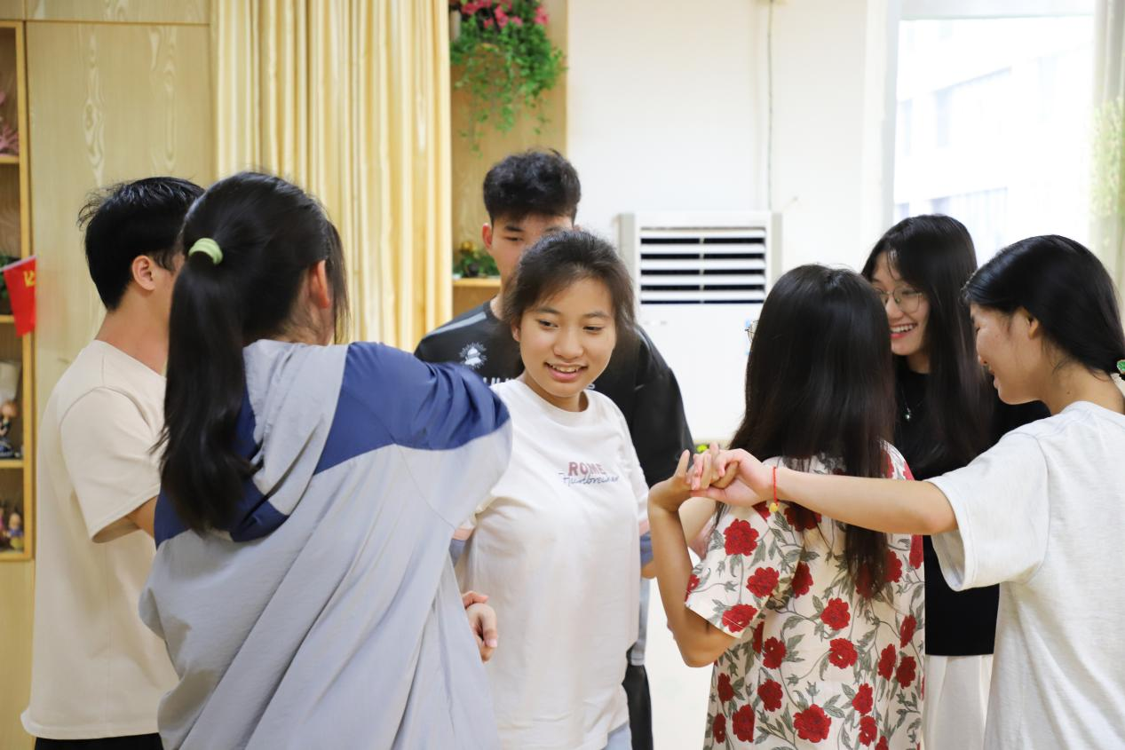 活动伊始,同学们在“几人几足”的热身游戏中迅速进入状态,为接下来的活动营造了轻松愉快的氛围。紧接着“情系千千结”游戏考验了同学们的团队协作与沟通能力,同学们尝试在不松手的情况下解开复杂的“结”。通过这个游戏,同学们深刻体会到了团队协作的重要性,也学会了如何在困难面前保持冷静与沟通。