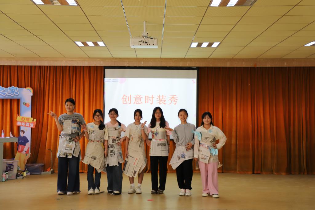“创意时装秀”将活动推向高潮。同学们围绕主题自由设计服装,利用环保材料打造出不同风格的作品,并通过“走秀”环节自信展示设计的服装。该环节不仅激发了学生的创造力,更鼓励他们散发自己身上独特的光芒。